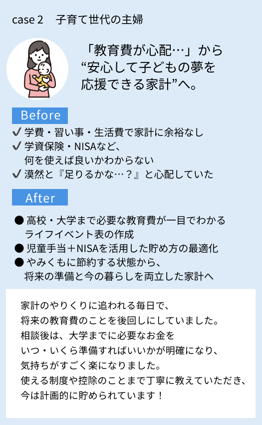 家計も将来のお金もまとめて相談できます!
