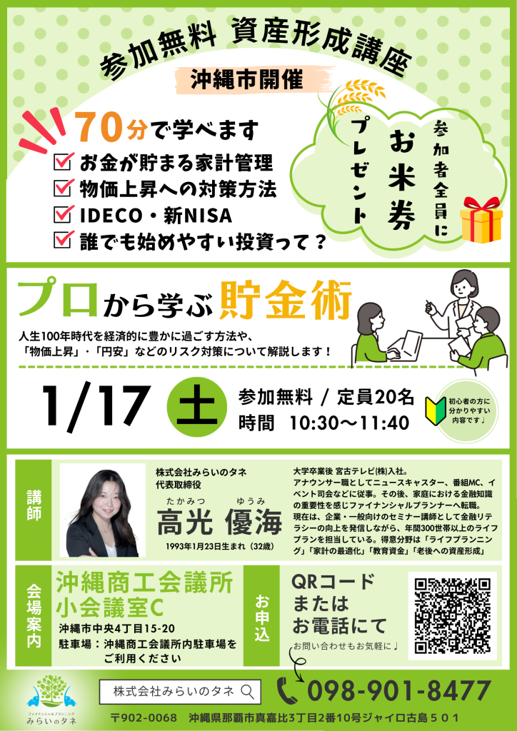 2026年1月17日(土)プロから学ぶ貯金術【沖縄市】 2025 12/16 セミナー・イベント 2025年12月16日2026年1月18日 セミナー・イベント よかったらシェアしてね! URLをコピーする URLをコピーしました! URLをコピーしました! 2025年10月26日(日)資産形成講座【名護市】 2026年2月14日(土)40代からの資産形成講座【沖縄市】 関連記事 2026年4月11日(土)初心者向け資産形成講座【沖縄県沖縄市】 2026年3月5日 2026年3月28日(土)後悔しないマイホーム計画【沖縄県沖縄市】 2026年2月14日 2026年2月14日(土)40代からの資産形成講座【沖縄市】 2026年1月18日 2025年10月26日(日)資産形成講座【名護市】 2025年11月16日