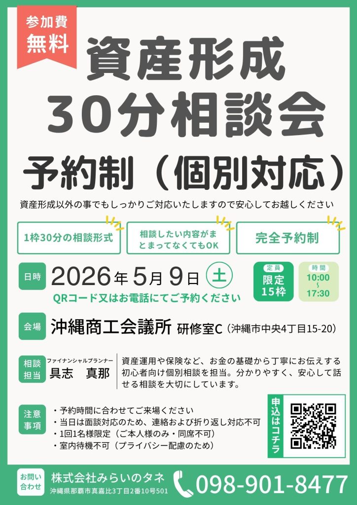 資産形成のためのライフプランニング体験会(30分相談)を開催いたします。