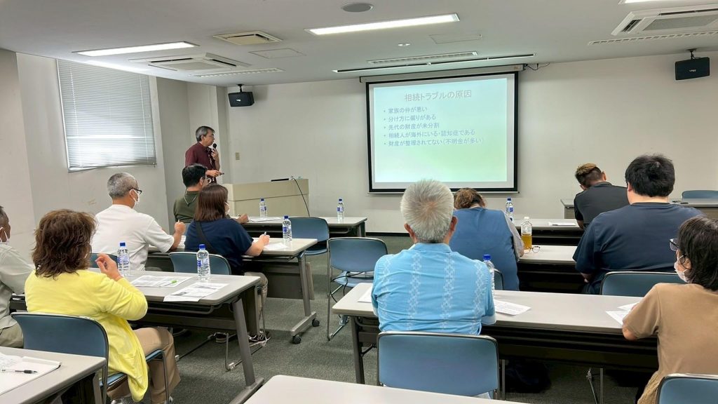 2025年6月25日、名護中央公民館にて「相続講座」を行いました。なかなか家族で話しにくい相続について考えるきっかけのヒントをお伝えしました。