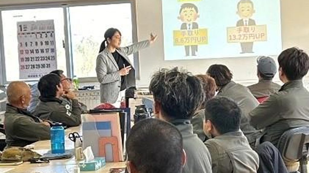 2025年8月1日、大地測量の安全大会で「103万円の壁」の講座を行いました。今年から「育児介護休業法」の改正があり、勉強になったというお声もいただきました。